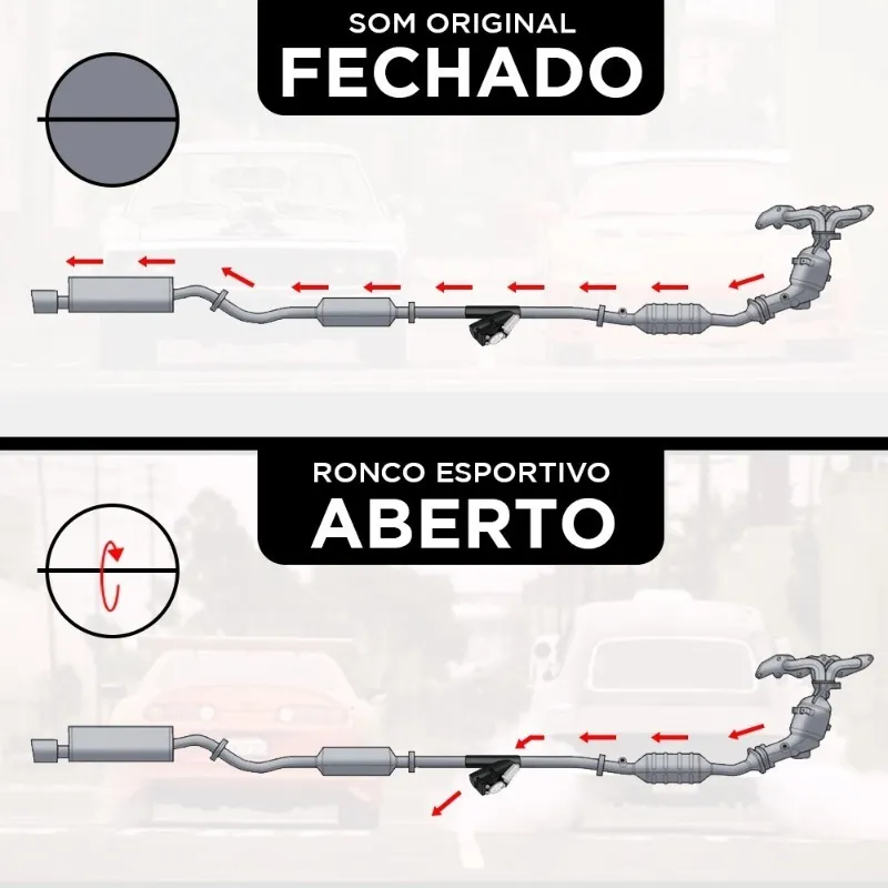 Estética Discreta: O cano em formato Y preto fica oculto sob o carro, mantendo o visual limpo enquanto a válvula está fechada.